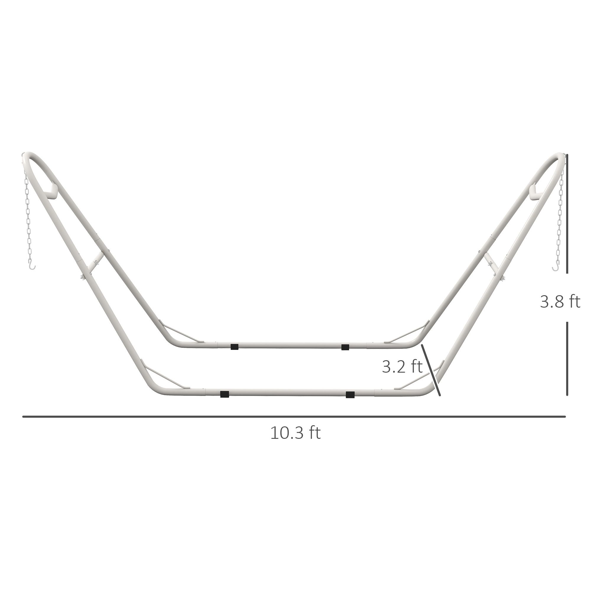 2.- Compatible Hammocks: With two S-hooks, two heavy-gauge hanging hooks, and two 17.75" chains, our hammock frame can be adjusted to handle hammocks up to 14.1'. It fits string hammocks, Brazilian hammocks, flat hammocks, and rope hammocks without issue.