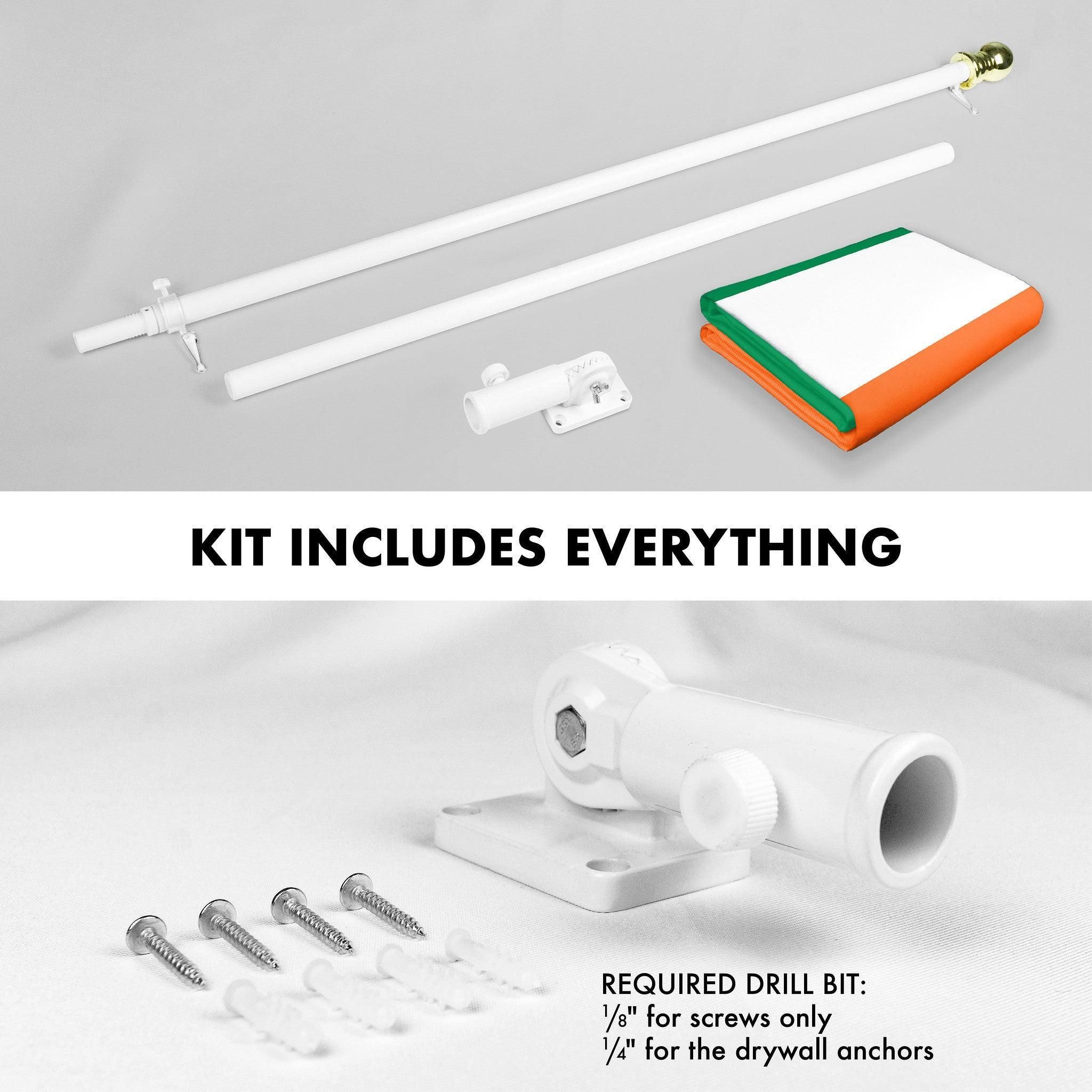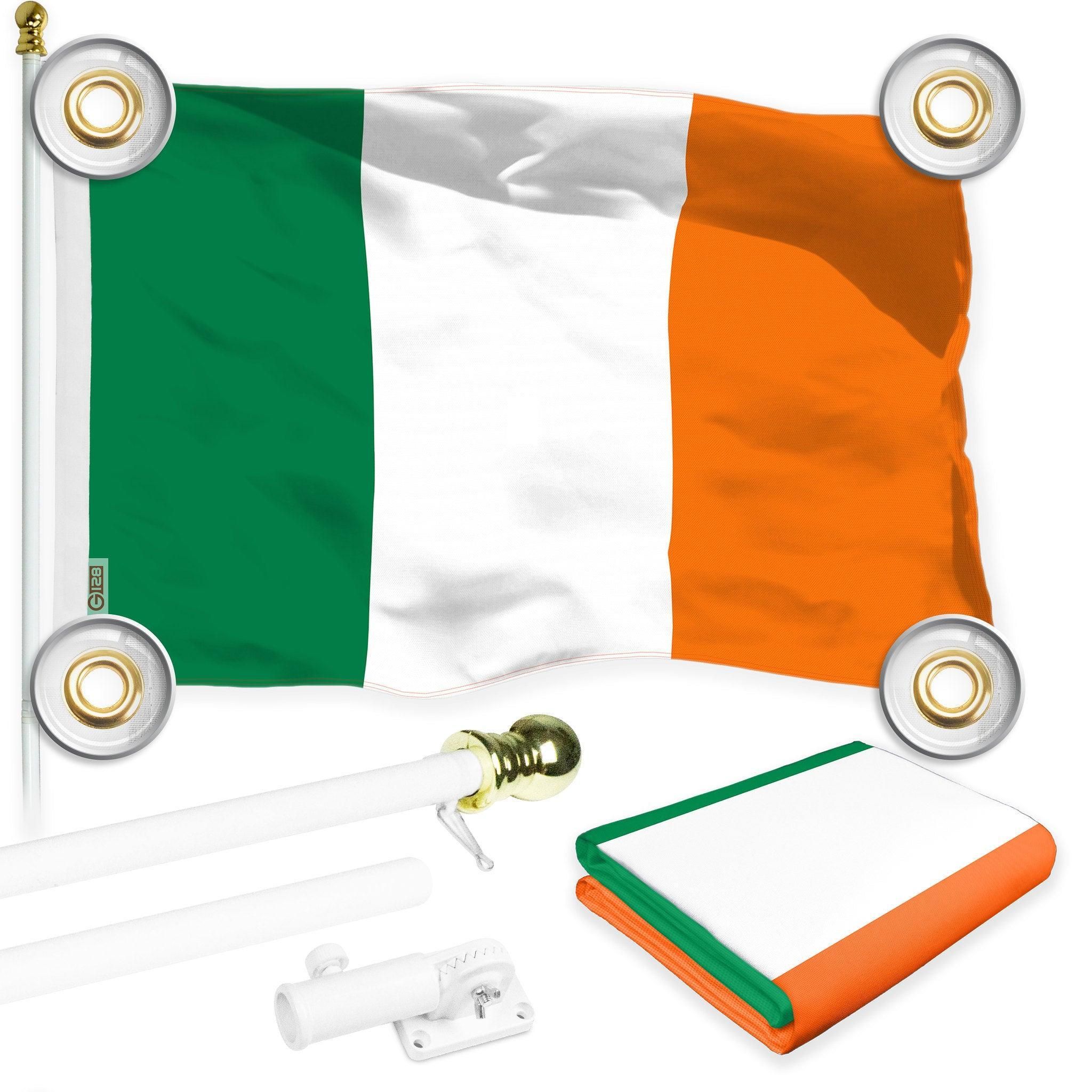 Combo Pack 6 Ft Tangle Free Aluminum Spinning Flagpole White and Ireland Irish Flag 3x5 Ft Printed 150D Polyester 4 Corner Brass Grommets Pole with Fl