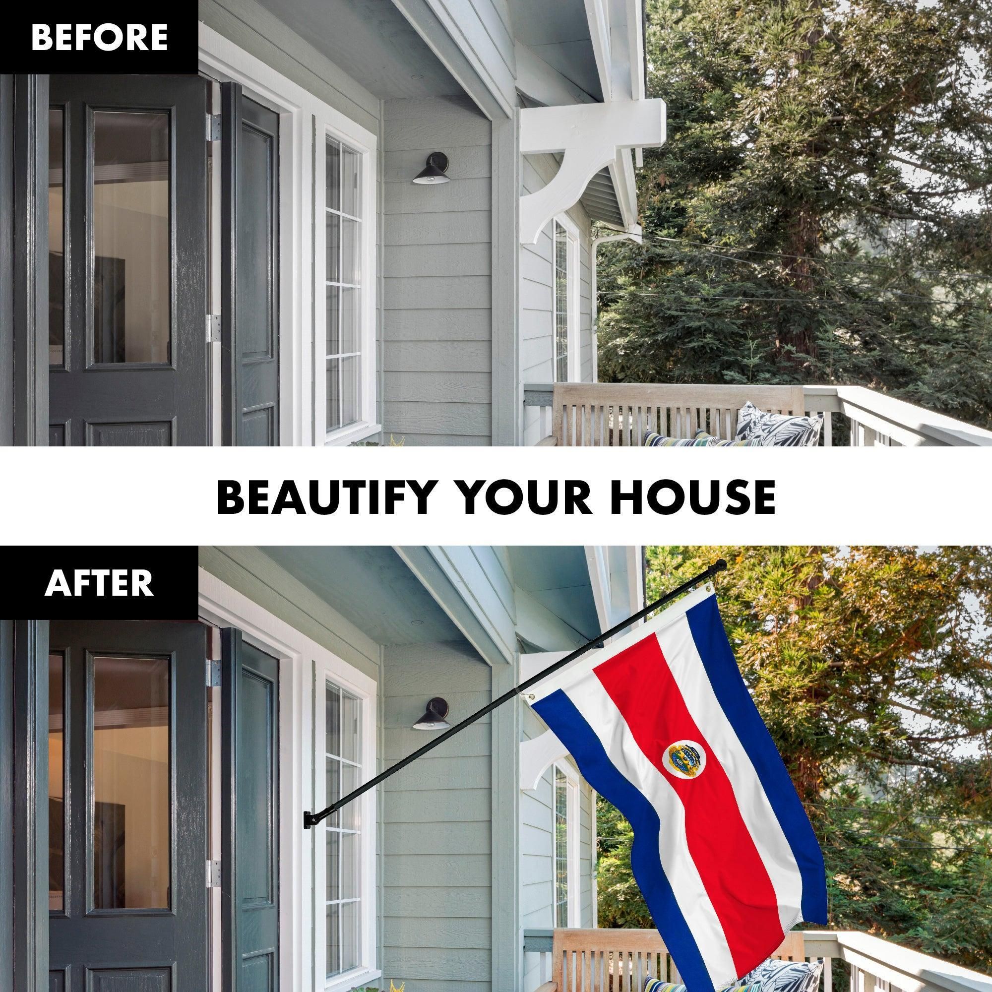 1.deluxe package: including a 3x5 ft printed costa rica flag with brass grommets for this deluxe flag and flagpole package! all the guarantees of the quality of our flag is included in this package. tangle free: both mounting rings spin at respective positions so the flag is protected and never tangles. this free rotation system allows the flag to wave undeterred by the flag pole. heavy duty: rust resistant aluminum alloy allows the flag pole withstand the harsh weather conditions. multiple