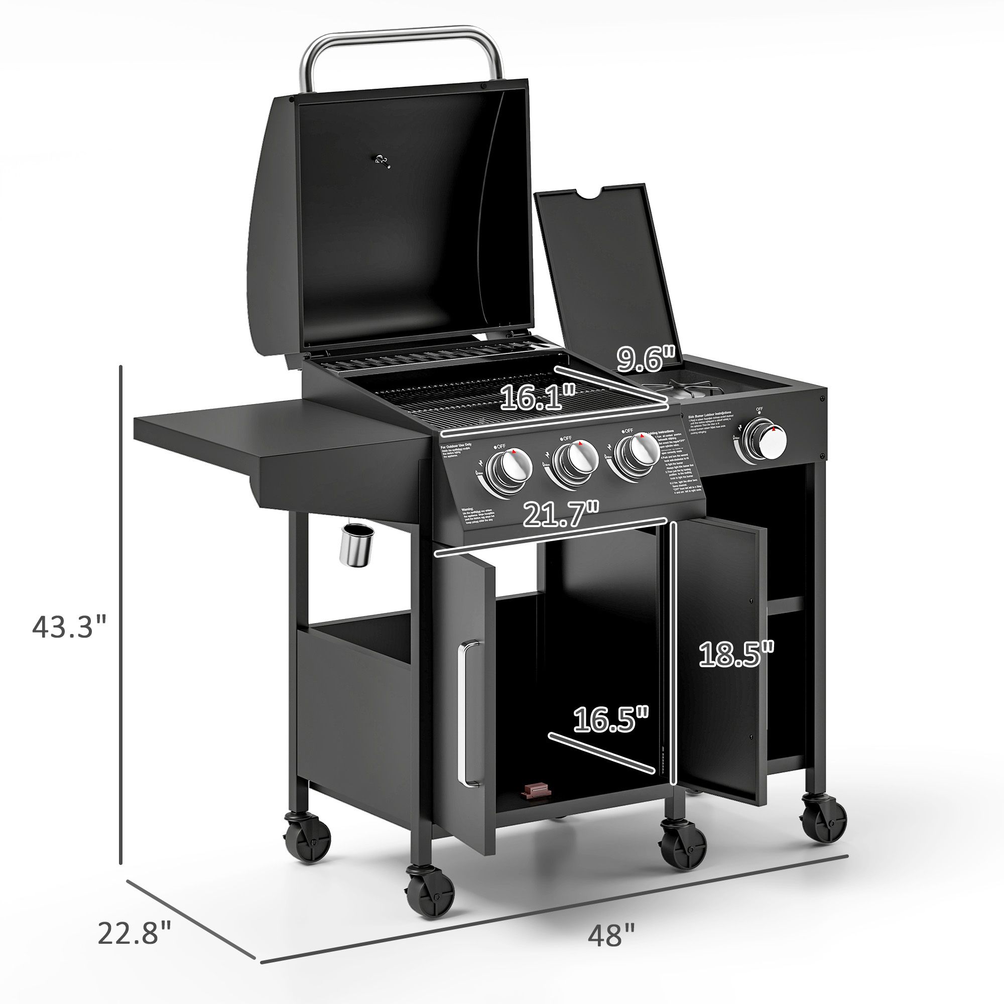 Outsunny 3 Burner Propane Gas Grill with Side Burner Barbecue Grill with Shelves, 37,000 BTU Output, 310 sq.in. Cooking Area