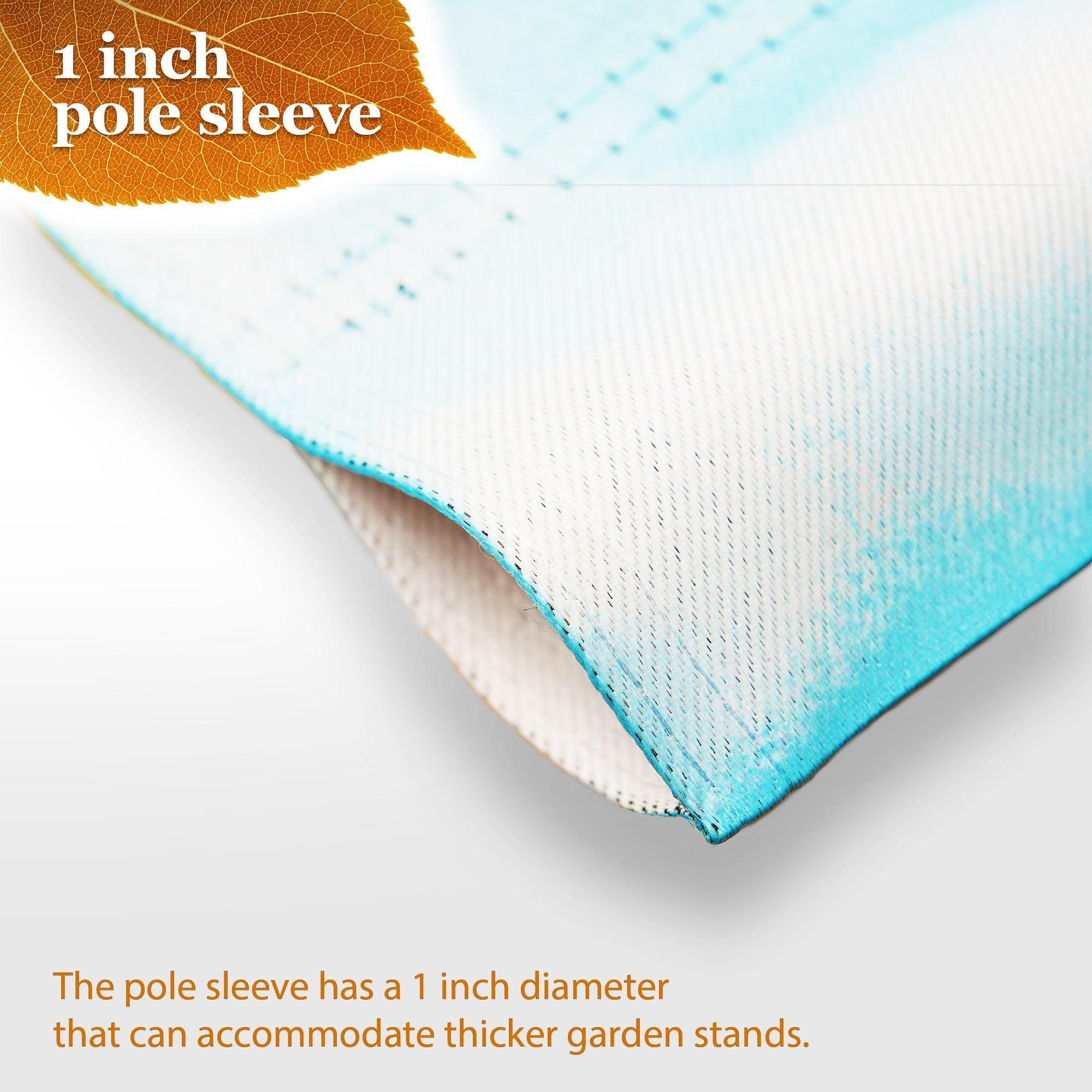 2.rusting and fading, great for outdoor use! decorative: this combo set will add liveliness to your front door or backyard garden.this combo is perfect for holidays, special events, seasons, everyday display, or as a gift for a loved one! specs: garden flag stand is 36" x 16" after assembly from black iron 3 piece set. flag is a 12"x18" size double sided blockout garden flag. imported, 100% polyester