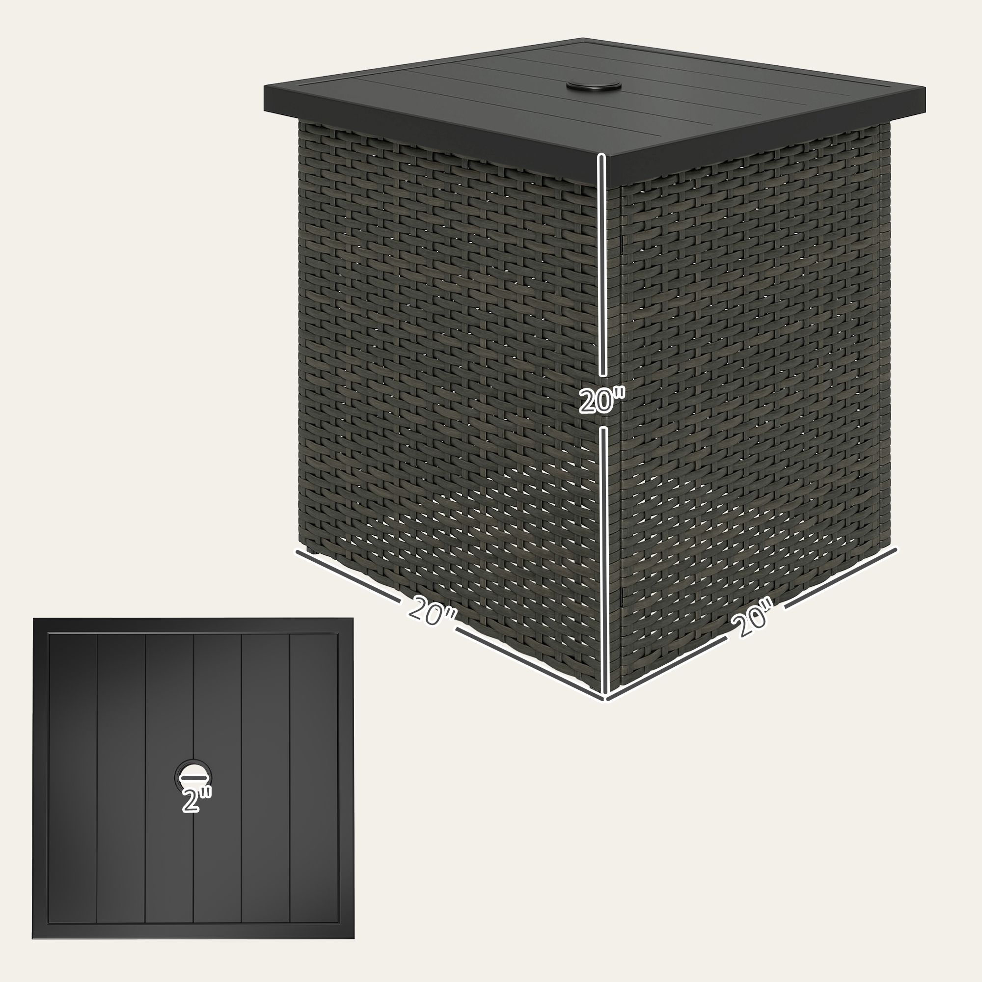 Home > Outsunny Wicker Side Table with 1.5" Umbrella Hole, Square Outdoor End Table with UV-Resistant Frame, Storage Space, Mixed-Brown