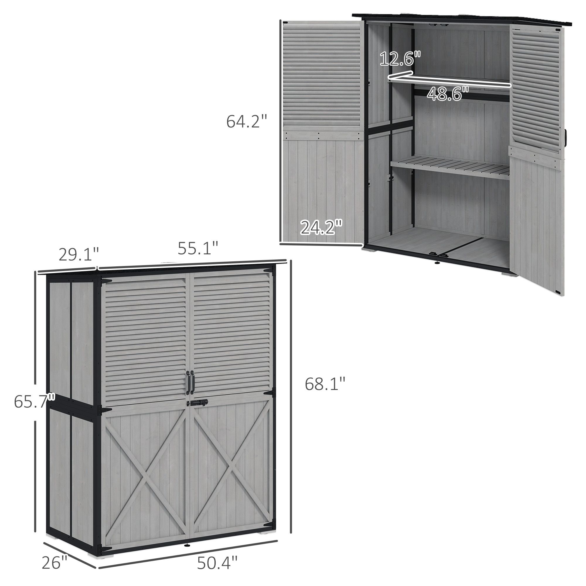 - - Shed Body Size: 50.4" W x 26" D x 65.7"/67.3" H