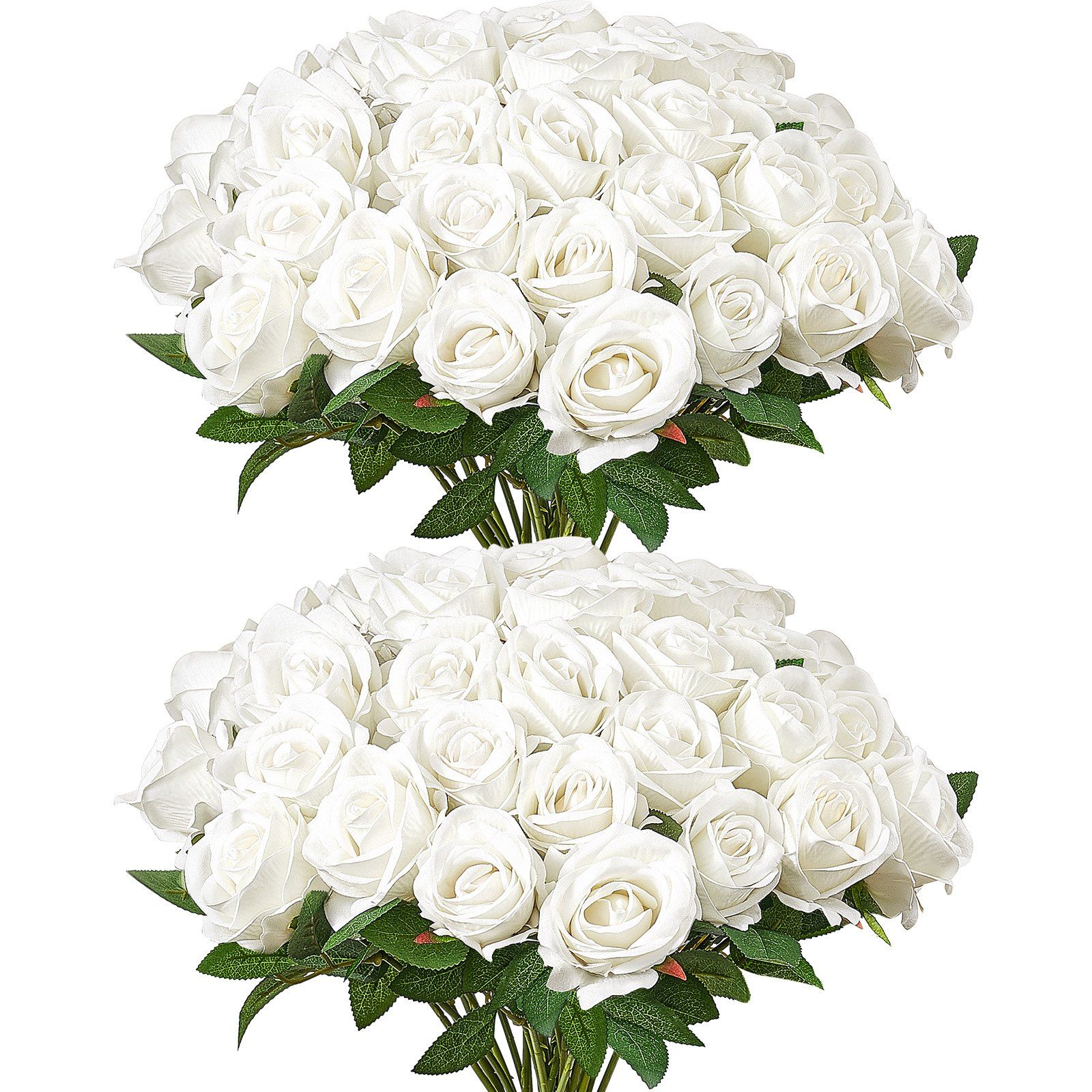 The set includes 60 artificial roses with 5-layer petals for a lifelike look. Each rose is 20" tall with a 2.76" head, made of anti-fade flocking fabric. Flexible stems allow easy bending and trimming for DIY. Low maintenance—just dust to keep fresh. Ideal for wedding, party, and home decor.
